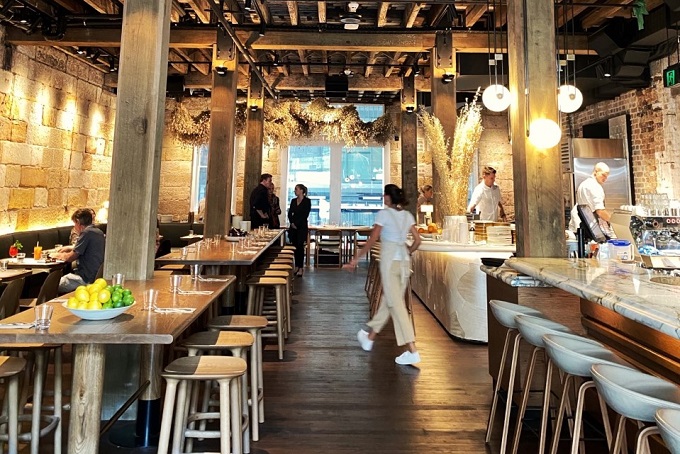 There is a golden glow about the newly opened Grana in Sydney’s Circular quay; from the sandstone walls and the warm red ironbark beams of the ceiling to the displays of wheat and the crusty fresh bread in the bakery. All of which bodes well for the first offering in this new multi-venue destination.