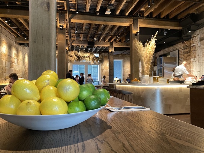 The restaurant is housed on the ground floor of the Hinchcliff building, which was a wool store in the 1800s. Sydney has a dearth of historic buildings so it is good to see this one so sympathetically, and stylishly, restored - who knew a sweeping 40 metre crushed mother of pearl benchtop and a marble bar went so well in a wool warehouse.