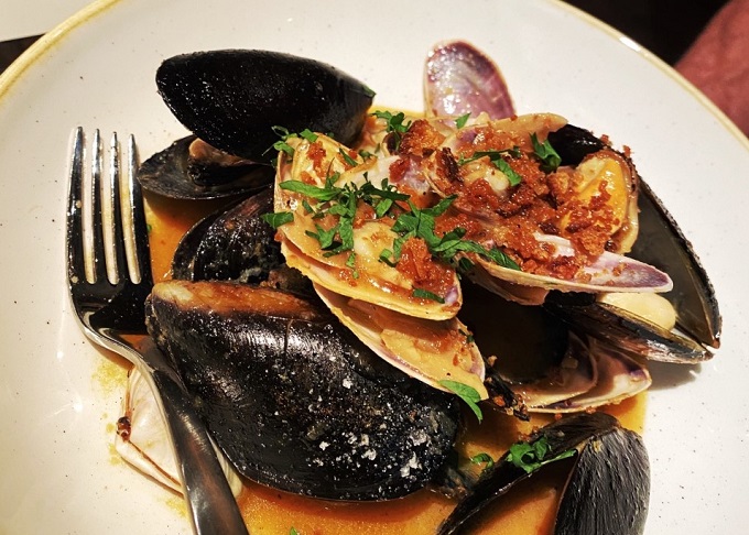 The food gets a gold star too, this is modern Australia-Italian with flair. A burrata rhubarb and radicchio melts in the mouth and the trevally fish tartare has a delicious burnt cucumber bite but it is when we get to the hand-harvested Jervis Bay mussels and pippins that things nearly get ugly. The chilli and citrus sauce is so good we fight over the sauce and have to mop it up with extra house-made sourdough. A dessert standout is the contrast of mellow mousse and citrus tang in the chocolate cream and orange bitter granita.