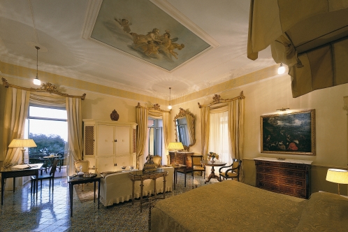 One morning in the lobby of The Grand Hotel Excelsior Vittoria I see an elegant old lady sitting under a potted palm, she must be a contessa the very least. The head concierge sees her, comes over and solicitously kisses her hand. This for me sums up the Excelsior. It is a hotel with heart ... and history, both with a capital 'H'. You can see its history in the original antiques, in the magnificent stucco work and the frescoed ceilings. You can feel it hanging in the air like a lingering scent; Sophia Loren stayed here and Marilyn Monroe and Enrico Caruso and endless marcheses, duchessas, countessas and more royalty than you can shake a tiara at. The rich and famous still come to relax and drink cocktails on the hotel's wide terrace looking out over the Bay of Naples or book a room with a view of Mount Vesuvius. If this hotel could talk, oh the stories it could tell!