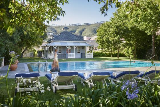 The spacious Helmsley suites at the top of Palm Avenue and the poolside Garden Cottages were recently redesigned by interior design firm Champalimaud. The poolside Cottages have always reminded me of an English village with their picket fences, gardens full of flowers and rose trellises round the door. Inside they now look even more like Victorian cottages decked out in pretty cream and blue. The new-look Helmsley Wing pays homage to its historical Cape-Dutch presence, with herringbone hardwood floors, geometric patterned drapery and rugs, a camel-coloured base and crown trim and dark chocolate doors and window, with art by local contemporary artist Kurt Pio.