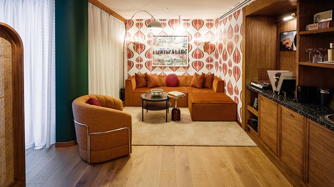 “Retrofuturism explores the themes of tension between past and future and the nostalgia of those eras is appropriated with integrated modern art installations and collaborations with local and international artists,” said Rachel Luchetti of Luchetti Krelle interior designers of the hotel.