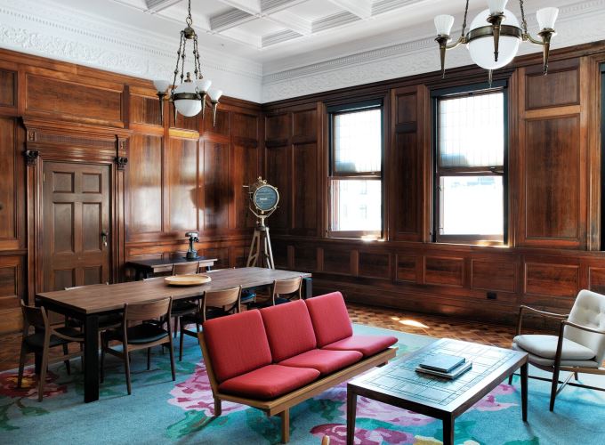 For his latest project Peng collaborated with local architects Tonkin Zulaikha Greer to transform the iconic old Clare Hotel pub and the next door Carlton United Breweries buildings into the hippest of new boutique hotels. The Sydney-based architecture firm understands the history of the area; its bohemian past (think indie rock, crims artists and intellectuals) and its trendy future (Chippendale cool). The result is a Hotel showcases the existing beauty of the original buildings - exposed brick, bare concrete, and old timber panelling - with vintage furniture, bespoke furnishings and 21st century technology. Large, original windows bathe interiors in light, spotlighting a colour scheme of greys, whites and warm wood tones. While the two buildings are linked by a glass walkway.